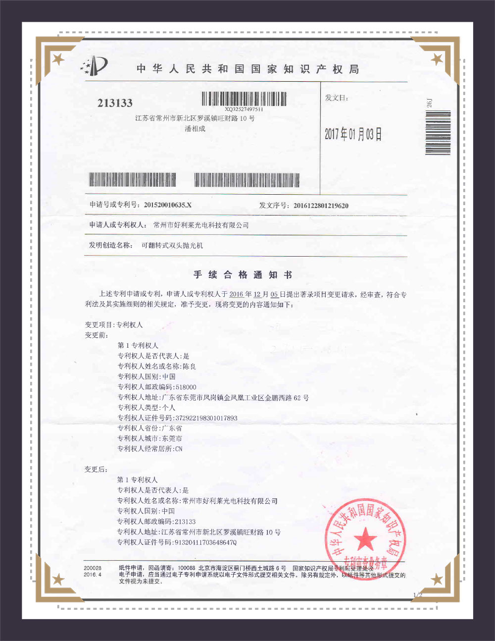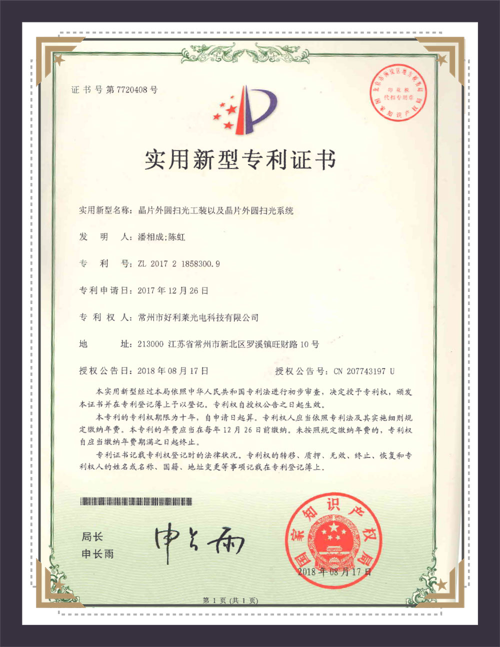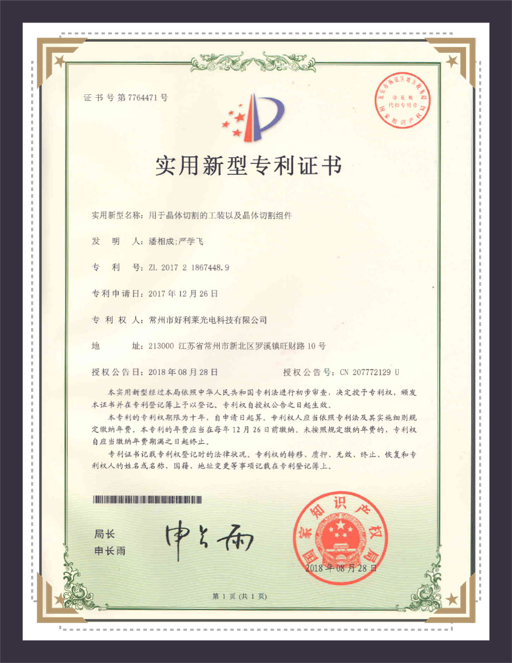 Certificat de brevet al modelului utilitar